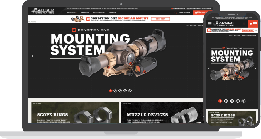 Badger Ordnance’s intent with this project was not only focused on a re-platform from Magento 1 to Magento 2, but also the addition of a retail site focused on gaining market shares associated with customers that fall outside of the dealer, military, and law enforcement population. These two websites were configured in a way that allowed the dealers to take advantage of Magento’s B2B features while allowing the retail customers to have a more traditional online shopping experience. This included a Binary Anvil built extension that allows backorder functionality to be enabled for the dealer site but not the retail site since native Magento inventory management configurations are global in nature.
